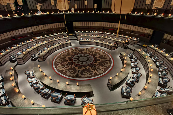 大明宮宴坐落于西安,是一個(gè)圓形演繹餐吧,總面積為2058.3平方米。