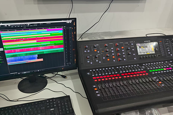 本項(xiàng)目初期先通過建模軟件進(jìn)行空間建模與聲學(xué)模擬,反復(fù)驗(yàn)證所用音箱的吊掛角度、聲壓覆蓋等參數(shù),確保紙面方案和現(xiàn)場(chǎng)體驗(yàn)之間的偏差最小。最終,落地方案采用了三樓觀眾區(qū)環(huán)繞,四樓觀眾區(qū)環(huán)繞,頂部環(huán)繞,超低音和返送組成的全沉浸布局,即三樓觀眾區(qū)12個(gè)水平環(huán)繞聲道,四樓觀眾區(qū)12個(gè)水平環(huán)繞,頂部6個(gè)水平環(huán)繞聲道和1個(gè)低頻聲道,遠(yuǎn)遠(yuǎn)高于傳統(tǒng)5.1或7.1影院系統(tǒng),也高于目前沉浸聲中常見9.1.6布局。對(duì)于沉浸式演繹而言,這種級(jí)別的系統(tǒng)搭建堪稱前所未有。本項(xiàng)目布局是真正360度環(huán)繞,頂部和四周都布置了音箱,既增強(qiáng)了聽感,也沒有出現(xiàn)延遲問題。在設(shè)計(jì)布局時(shí),我們會(huì)考慮場(chǎng)地承接的演出內(nèi)容對(duì)頻響和聲壓級(jí)都有較高要求,系統(tǒng)也必須支撐得住。此次頂部環(huán)繞PA采用了6只C212全頻音箱掛于頂部,三樓和四樓觀眾席環(huán)繞采一共采用了24只CX804線性音柱,全部隱藏安裝,此音柱為三分頻類型,并且采用獨(dú)家開模的單元架構(gòu),非常適合高端場(chǎng)所使用。超低音采用6只單21寸單元隱藏于選裝舞臺(tái)下方。除了音箱以外,作為沉浸式閉環(huán)系統(tǒng)在處理器、功放等方面裝備齊全,更配合前端的各種DAW工作站,讓客戶自由調(diào)配、定制沉浸式的演繹現(xiàn)場(chǎng)。
